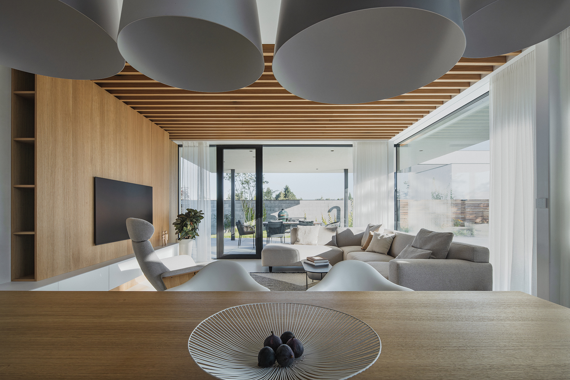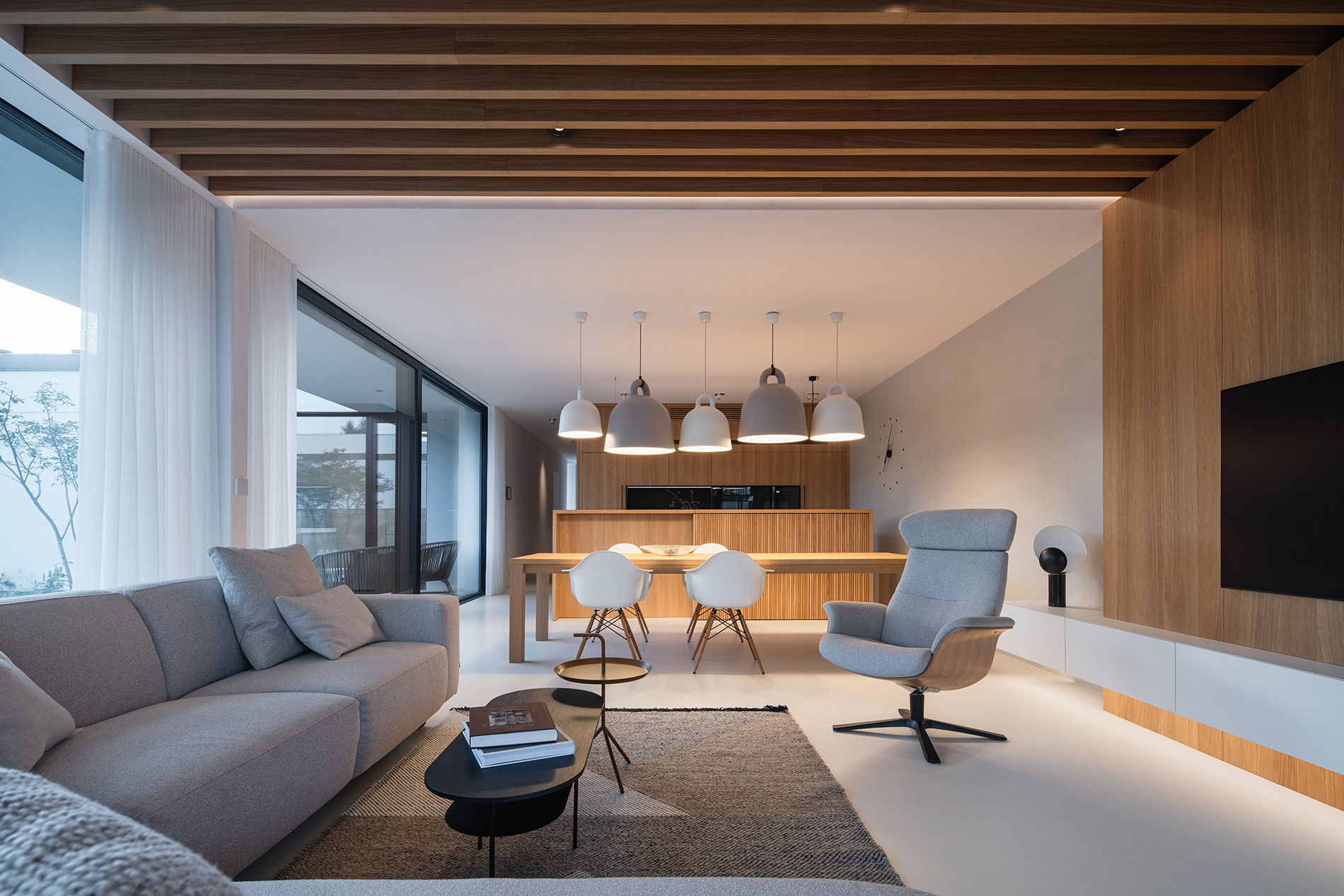 „Před dubem, za dubem, na ten jsme si počíhali“... parafrází textu známé filmové skladby autorského dua Svěrák/Uhlíř, chceme vyzdvihnout, že dub, je základní dekor, jenž se prolíná celým interiérem nového rodinného domu, který je řešen s opravdu důsledným přístupem. S radostí pracujeme na projektech, které mají svého nekompromisního „režiséra“, který umí nejen pohlídat každý detail, ale také jej smysluplně odůvodnit. Architekt Lukáš Janout zde profesionálně vedl celou realizaci tohoto rodinného unikátu.