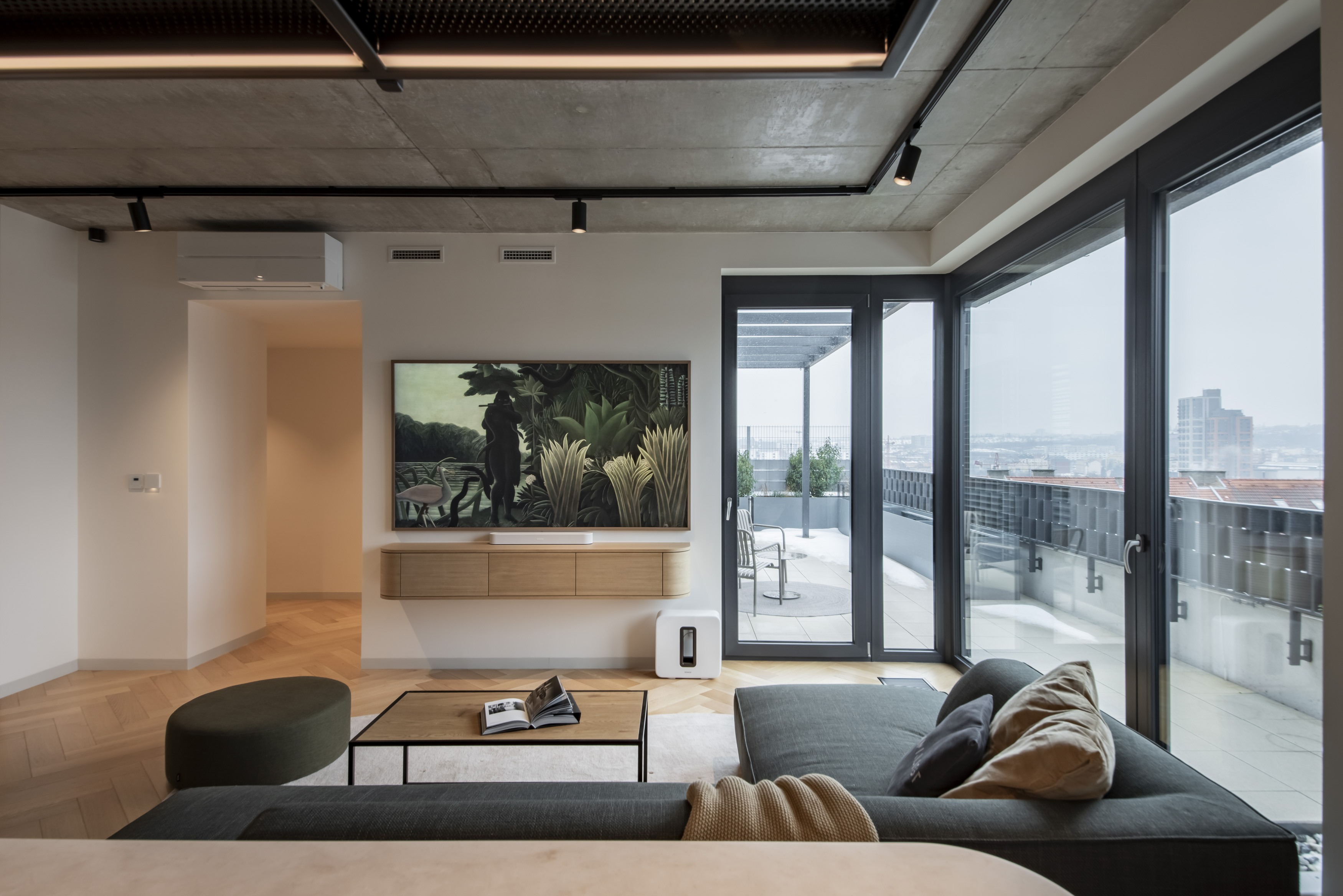 Realizace soukromého interiéru byla pro náš tým výzvou v hledání rovnováhy mezi surovostí moderních materiálů a jemností klasických forem. Výsledkem je prostor, který působí minimalisticky, ale díky precizně zvoleným materiálům a tvarosloví odkazujícímu na éru první republiky neztrácí na útulnosti.