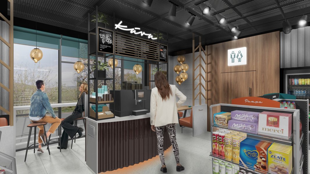 Stali jsme se součástí vývoje nové sítě čerpacích stanic s neotřelým, názvem „PUMPA“. Jde o projekt sítě čerpacích stanic společnosti GAS Slovakia, který vznikal pod architektonickou taktovkou studia Brádka design. Investor potřeboval „in natura“ ověřit funkci designu, a proto jsme společně vyrobili a nainstalovali prototypovou prodejnu.